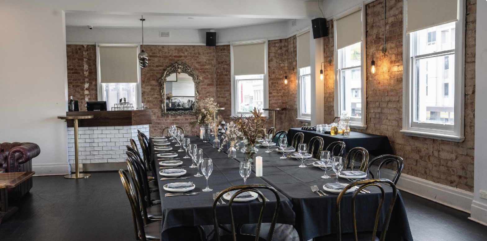 An exclusive upstairs space featuring a private bar, cosy lounge nooks, a convertible dance floor, and an adjoining outdoor area. The Function Room at The Exchange is ideal for any occasion from elegant sit-down dinners and cocktail parties to birthday celebrations, engagement parties, and intimate weddings.